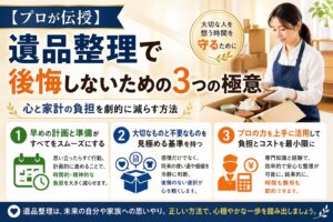 故人様の残されていったご遺品はご遺族様にとっても大変貴重なものです。身内で整理するにあたり分別の仕方がわからない、重量のある物が運べない、財産価値になる物、名義変更が必要なものなど、たくさんのご遺品を分別することになります。ご遺族様に精神的、肉体的にもご負担がかからないよう私たちは、故人様の残した大切な貴重なご遺品をご遺族様へ心を込めて繋げます。また生前整理、福祉住環境整理、空き家整理、残置物撤去などもしています。お気軽にご相談ください。