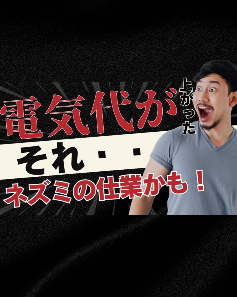 「節電しているのに、なぜか電気代だけ上がる」「家電は買い替えていないのに請求が重い」——この違和感、原因が“家電や契約”だけとは限りません。見落とされがちなのが、天井裏・壁の中・床下で進むネズミ被害です。ネズミは夜間に活動し、部屋のすみや物陰、壁に沿って行動する習性があるため、気づいた時には被害が進んでいるケースもあります。